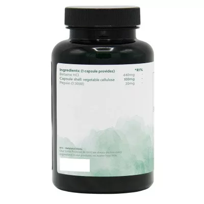 A G&G Betain HCL terméke azt a célt szolgálja, hogy segítse a gyomorsav termelődését az élelmiszerek megfelelő emésztése érdekében, ha szervezetünkben a savtermelés csökken. A Betain HCL a betain nevű hatóanyag hidroklorid-sója, amely általában növényi élelmiszerekben, például a céklában található meg. A kapszulát túlnyomórészt sósav forrásként használjuk. A betain-hidroklorid szájon át történő bevételét követően a gyomorsav mennyisége 6-12 percen belül kezdhet növekedni, és a hatás körülbelül 70 percig tarthat. A savasság csúcspontja 15-30 perc alatt érhető el.