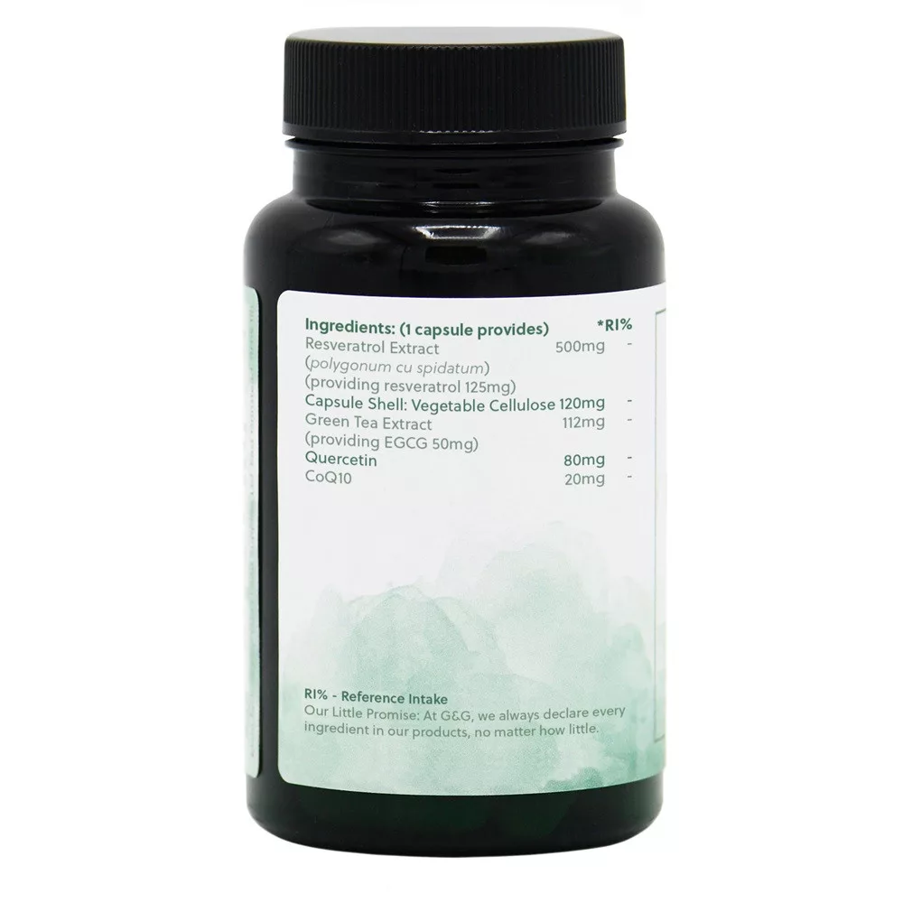 A pozitív élettani hatás fokozása érdekében a G&G létre hozott egy olyan komplex formulát, amely nem csak magát a resveratrolt, hanem annak szinergistáit, azaz a hatását tovább erősítő természetes anyagokat is tartalmazza.
