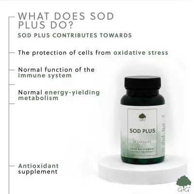 Fontos kihangsúlyoznunk, hogy az SOD Plusz készítmény a szuperoxid dizmutáz enzimen kívül tartalmaz még Glutationt, mivel a szuperoxid szabadgyök okozta károsodás a Glutation szintet is csökkenti, valamint a Glutation képződéséhez szükséges N-acetil-L-ciszteint, továbbá az SOD enzim képződéséhez szükséges nyomelemeket: rezet, cinket és mangánt is. Az így összeállított komplex rendkívül hatékonyan képes támogatni és egyben pótolni szervezetünk első számú antioxidáns védelmi vonalát.