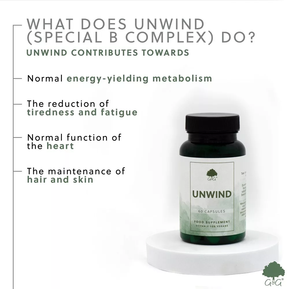 A G&G Unwind Formulája (az unwind angol szó ellazulást jelent), az alapvető B-vitamin komplexen kívül tartalmaz még C-vitamint, E-vitamint, káliumot, kalciumot, magnéziumot, továbbá lecitint és reishi gomba kivonatot is.