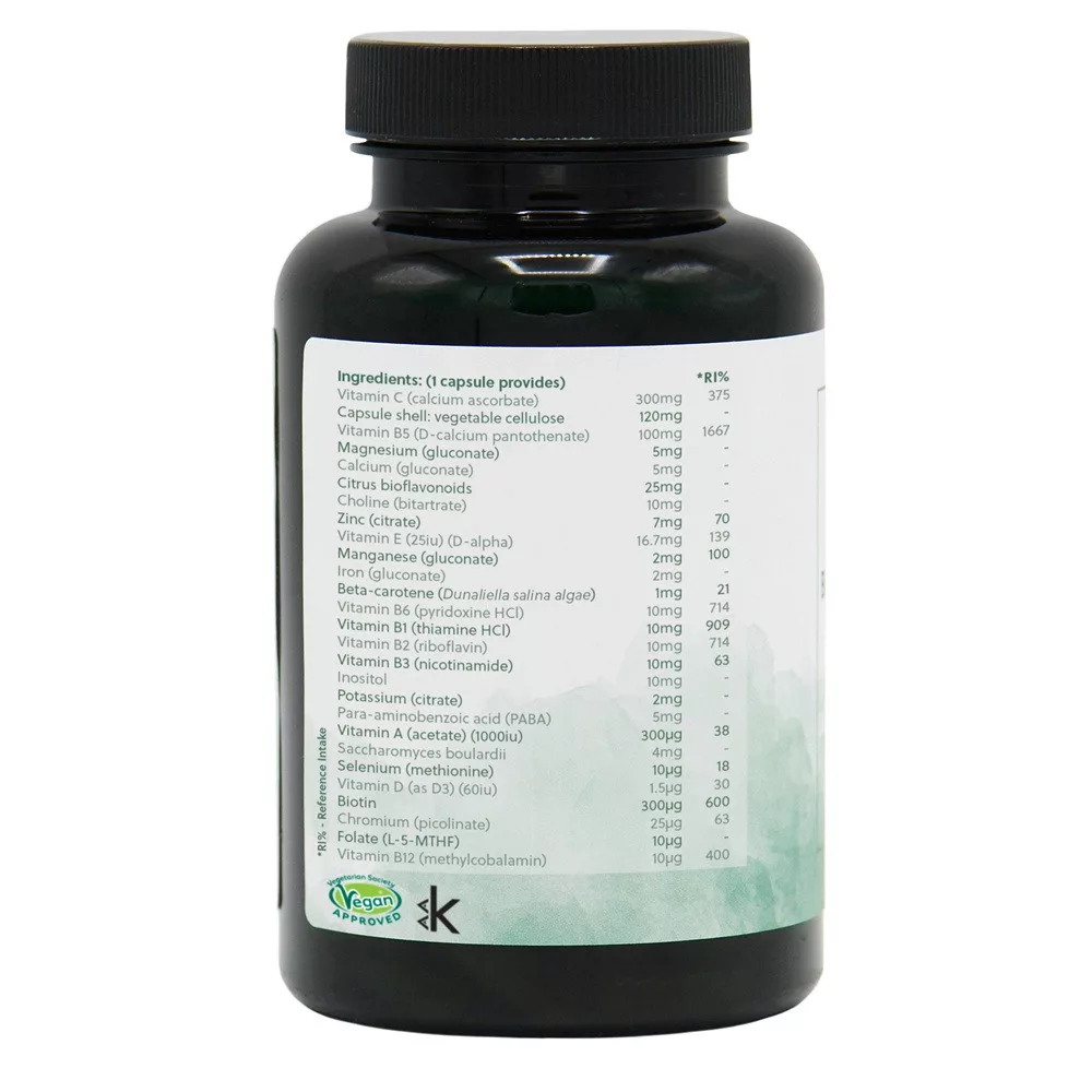 900 mg C-vitamin, 300 mg B5-vitamin, 150 mg Lactobacillus Acidophilus, 75 mg E-vitamin, 75 mg bioflavonoidok, 30 mg B-vitamin komplex, 30 mg cink, 30 mg laboda, 15 mg kalcium, 15 mg magnézium, 6 mg mangán, 6 mg kálium, 6 mg vas, 6 mg Aloe vera (200x koncentrátum), 3 mg bétakarotin, 900 μg A-vitamin, 30-30 μg szelén, króm, 3,75 μg D-vitamin