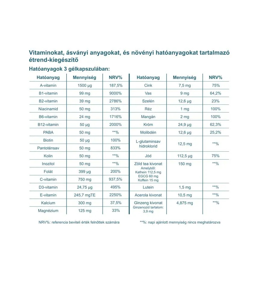 Multivitamin ginsenggel, zöld teával és luteinnel
