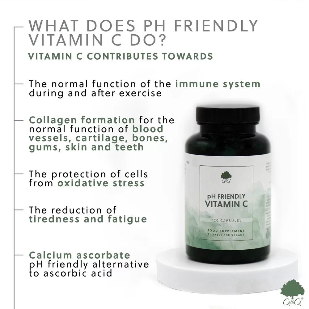 kalcium aszkorbát a C-vitamin egyik formája, melyet arra használnak, hogy csökkentsék a vitamin savasságát és ezáltal az esetleges emésztőrendszerbeli irritációt. Habár a kalcium aszkorbát formátuma eltérő a standard C-vitaminétól, a legfrissebb kutatások azt mutatták, hogy az antioxidáns hatása ugyanolyan, míg a szájon át történő bevitelkor bioaktivitása magasabb a különböző emésztőrendszeri problémákkal küzdő emberek esetében. A G&G pHbarát C-vitamin Formulája természetesen kalcium aszkorbátot tartalmaz.